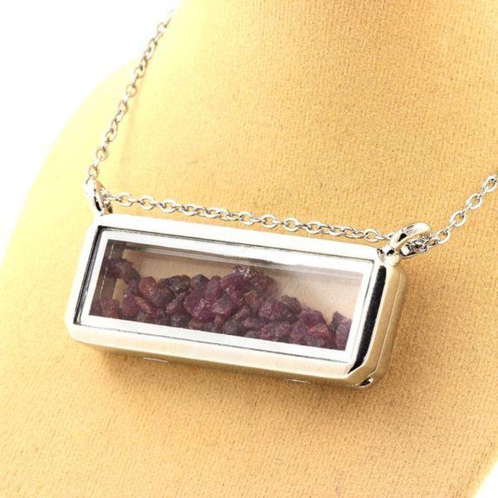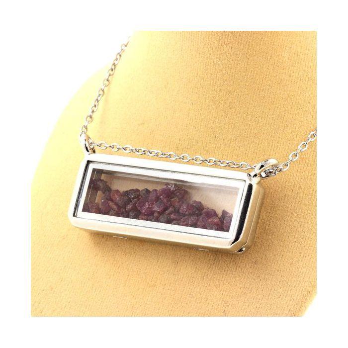 Pierres et Minéraux. Collier Rubis brut. Modèle rectangle.