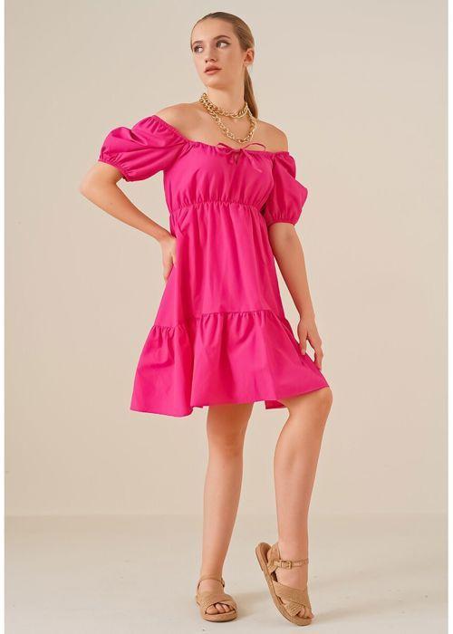 MT Clothes - Robe Evasée en Popeline Rose 42
