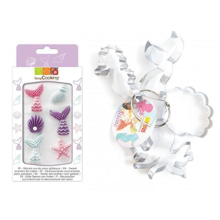 4 Découpoirs inox à biscuits et 6 décors sucrés sur le thème Sirène Dans ce kit, vous pourrez trouver 4 découpoirs à biscuits en forme de queue de sirène, de coquillage, de pieuvre et d'hippocampe pour réaliser des biscuits originaux sur le thème sous-marin; ainsi que 6 décors sucrés dont 3 sucres décoratifs en forme de queue de sirène et de 3 décors sucrés en forme de coquillages et d'étoile de mer pour embellir vos gâteaux, cupcakes et autres gourmandises. Dimensions des décors sucrés : Queue de sirène : 3,5 x 5 x 0,8 cm Coquillage turquoise : 2,2 x 4,5 x 1 cm Coquillage violet : 3 x 3 x 1 cm Etoile de mer : 3,5 x 3,3 x 0,7 cm Ingrédients : sucre, épaississant E414, protéine de lait solubilisé, acidifiant E330, concentré de carthame, concentré de spiruline, colorant : E120. Peut contenir des traces d'œufs . Les découpoirs à biscuits sont en inox, apte au contact alimentaire. Dimensions des découpoirs : Queue de sirène : 13 x 7,5 x 2,5 cm Coquillage : 9,5 x 11,5 x 2,5 cm Pieuvre : 12 x 11,6 x 2,5 cm Hippocampe : 13 x 6,5 x 2,5 cm Le vendeur confirme que ses produits sont conformes à toutes les lois applicables et ne sont proposés que s'ils sont conformes aux politiques de Joom et aux lois européennes sur la sécurité et la conformité des produits.