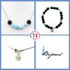 Pierres et Minéraux. Parure bijoux Bracelet Collier perles Angélite + Aigue-marine + Taille personnalisable.