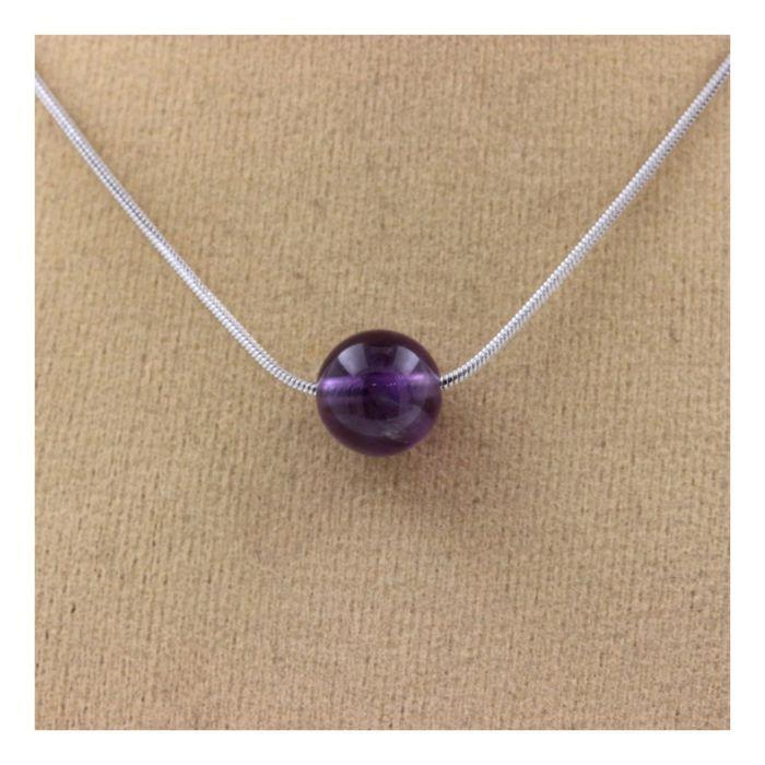 Collier - A BIJOUX - Améthyste 8 mm - Acier inoxydable - Longueur personnalisable - Mixte