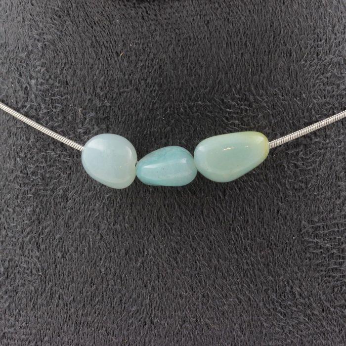 Pierres et Minéraux. Collier 3 perles Amazonite du Brésil. Chaine en acier inoxydable Collier femmes, hommes. Taille personnalisabl