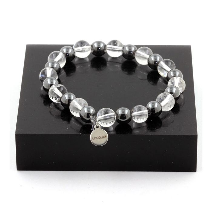 Pierres et Minéraux. Bracelet Perles Quartz + Hématite 8 mm. Fabriqué en France.