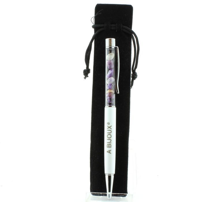 Pierres et Minéraux. Stylo minéraux Charoïte de Russie. Couleur blanc.