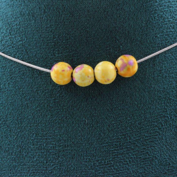 Pierres et Minéraux. Collier 4 perles Jaspe jaune violet 8 mm. Chaine en acier inoxydable Collier femmes, hommes. Taille personnali