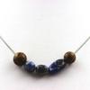 Pierres et Minéraux. Collier perles bois 8 mm + Apatite bleu du Brésil Chaine en acier inoxydable.
