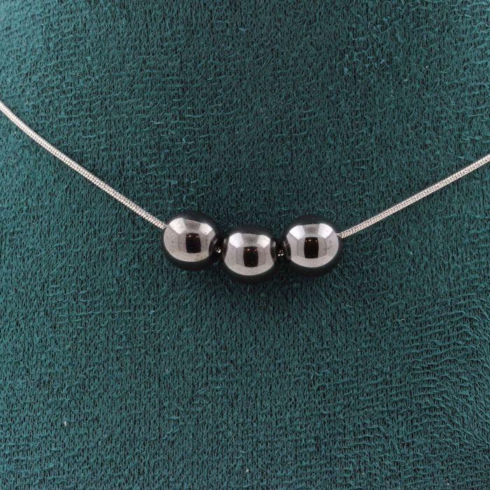Pierres et Minéraux. Collier 3 perles Hématite 8 mm. Chaine en acier inoxydable Collier femmes, hommes. Taille personnalisable.