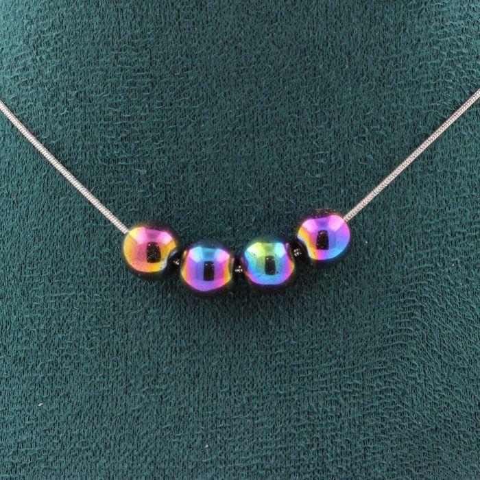 Pierres et Minéraux. Collier 4 perles Hématite multicolore 8 mm. Chaine en acier inoxydable Collier femmes, hommes. Taille personna