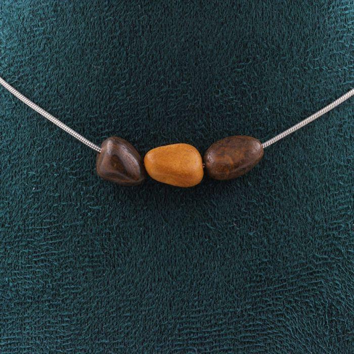 Pierres et Minéraux. Collier 3 perles Opale Boulder d'Australie. Chaine en acier inoxydable Collier femmes, hommes. Taille personna