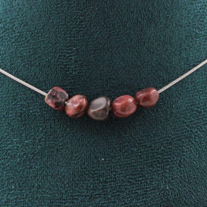 Pierres et Minéraux. Collier 5 perles Rhodochrosite du Brésil Chaine en acier inoxydable Collier femmes, hommes. Taille personnalis