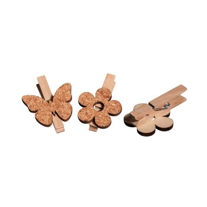 Pinces à linge bois x 6 - fleurs & papillons en liège