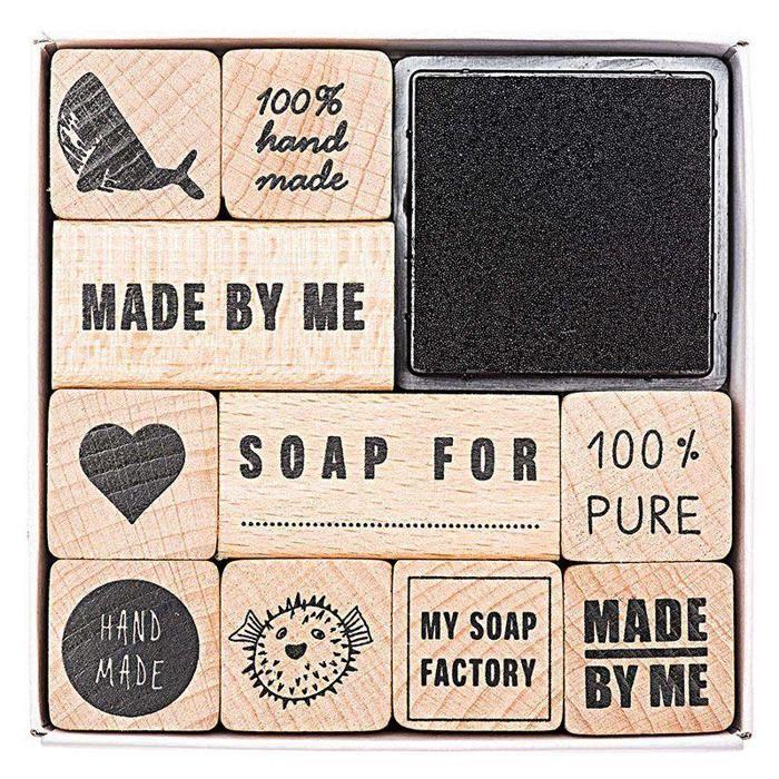 Set de tampons - Made by Me - 11 pièces - Multicolore - 2x2 cm et 4x2 cm - Mixte