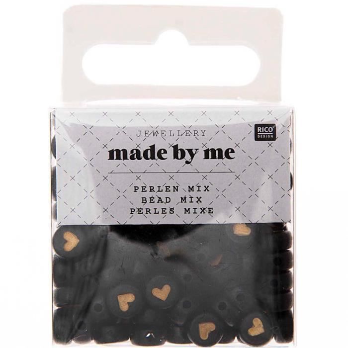 Perles acrylique Rondes - Coeur - Noir et Doré - 7 mm - 165 pcs