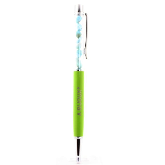 Pierres et Minéraux. Stylo minéraux Larimar de République Dominicaine. Couleur Vert pomme.