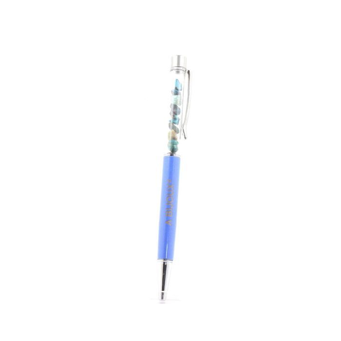 Pierres et Minéraux. Stylo minéraux Chrysocolle des USA. Couleur Bleu.