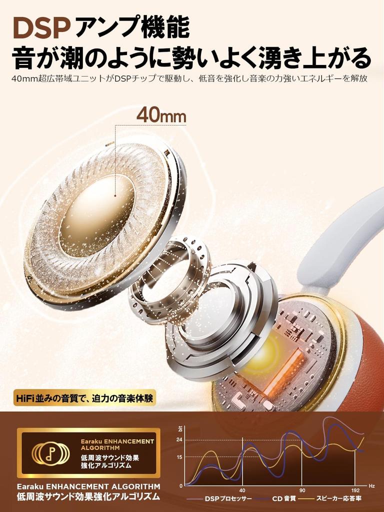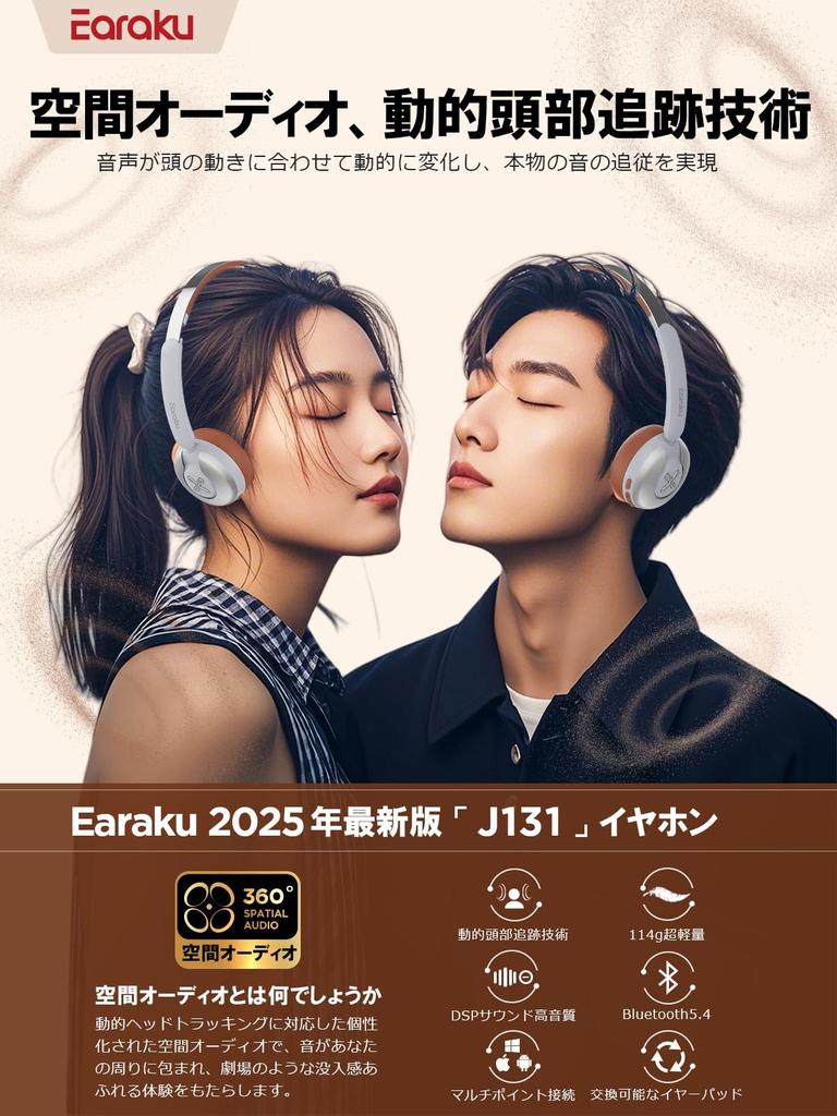 🎧 [Пространственное аудио/шумоподавление ANC]: Высококачественные беспроводные наушники Earaku оснащены 40-миллиметровым динамическим драйвером и поддерживают источники звука высокого разрешения, обеспечивая четкое и деликатное звучание.. Инновационная технология обеспечивает насыщенный пространственный стереофонический звук, а также динамическое отслеживание положения головы.. Эта функция позволяет наушникам в режиме реального времени регулировать звуковое поле в соответствии с движениями головы пользователя, обеспечивая более захватывающий опыт прослушивания музыки.. Если вы хотите сосредоточиться на работе или послушать музыку, включите пространственный аудиорежим, чтобы отсеять внешние звуки и насладиться более глубоким звучанием музыки.