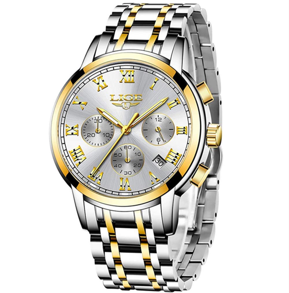 LIGE 9810 Часы Механизм Бизнес Водонепроницаемый Хронограф Полностью Стальной Кварцевый Светящийся Часы Золотые Белые Мужские — купить товар онлайн с бесплатной доставкой до всему миру!