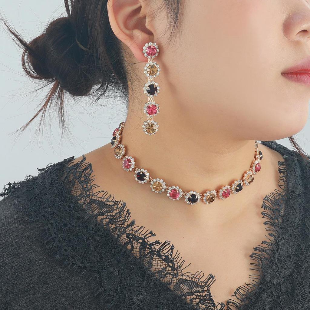 Винтажный комплект из ожерелья и серег с драгоценными камнями и бриллиантами на ключицу для женщин