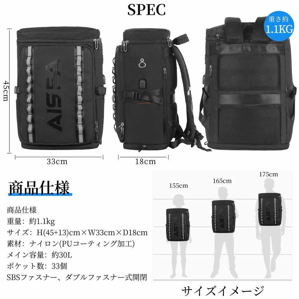 [Рюкзак большой вместимости] Размер: (45+13)см*33см*18см Вес: 1.1 кг вместимость: 30 л до расширения. Приблизительно 35 л после расширения. Популярная коробчатая структура, квадратная форма и отличная вместимость делают этот рюкзак отличным вариантом для любого случая.. Это вместительный рюкзак с продуманными карманами для сортировки, в который поместится множество необходимых вещей, таких как 17-дюймовый ПК, документы формата А4 и сменная одежда на 2–3 дня.. [Двухслойная структура сверху и снизу] Идеальное скрытое нижнее отделение для мокрых и сухих вещей с оригинальным компактным дизайном AISFA. Двухслойный тип с местом для хранения, разделенным на верхнюю и нижнюю секции.. Нижний карман выполнен из водонепроницаемой ткани, поэтому в нем можно хранить обувь, ланч-боксы, мокрые зонты, одежду и т. д.. отдельно! Особенно эффективно в сезон дождей!