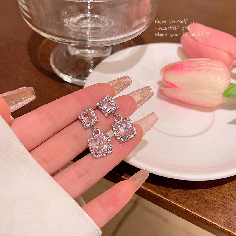 Серьги геометрической формы с квадратным вырезом из серебра 925 пробы и розовым цирконием — модные, роскошные и универсальные для женщин