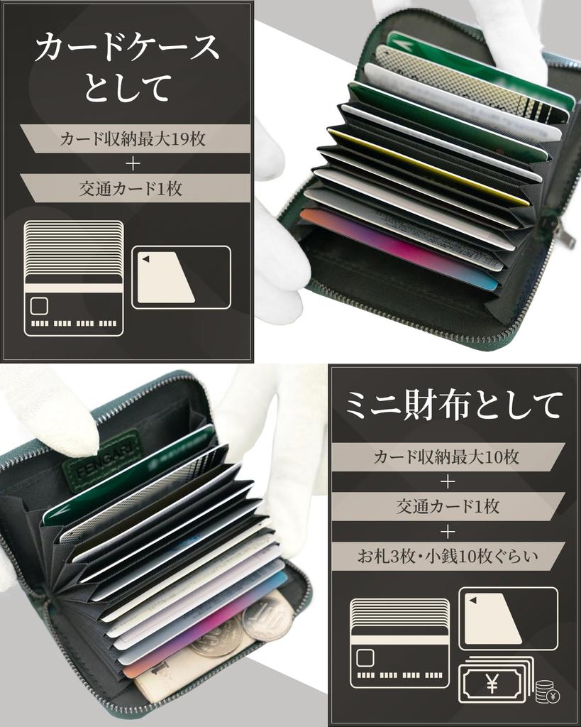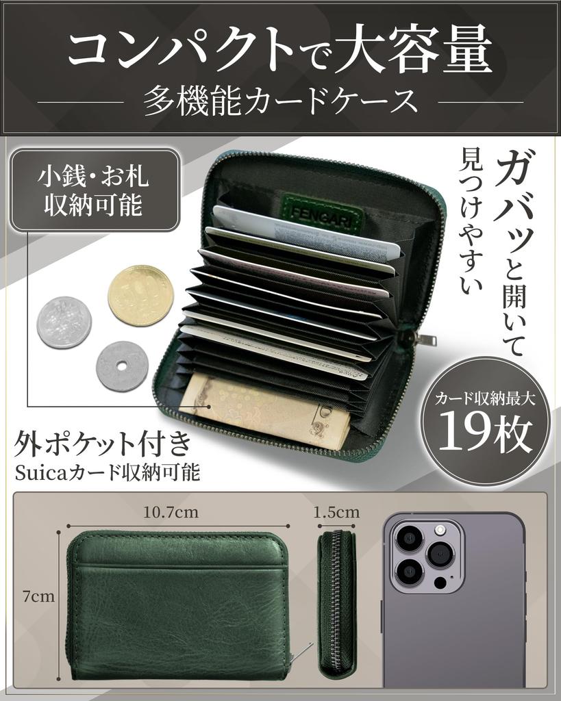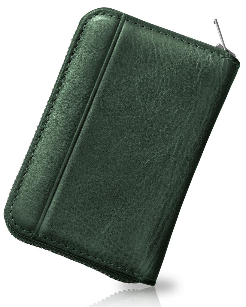 Чехол для карт Himeji Leather, большой вместительный держатель для карт из натуральной кожи, легкий сильфон, защита от скимминга, молния YKK [FENGARI] для мужчин (зеленый)