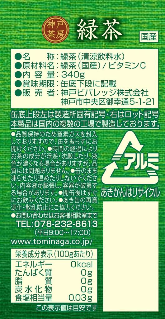 Зеленый чай Kobe Sabo, банка 340 г x 24, домашний чай [100% листья]