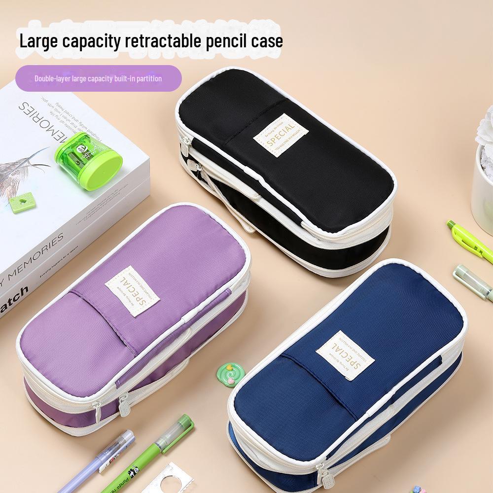 Выдвижной двухслойный пенал Macaron: Большая вместимость, однотонный цвет, для учеников младших и старших классов.