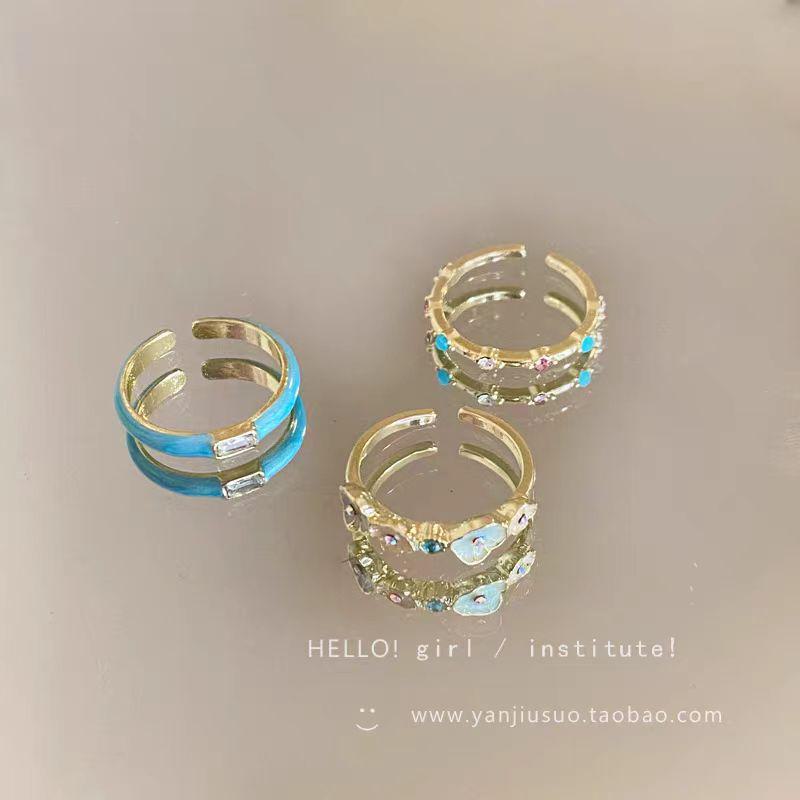 Элегантное регулируемое перламутровое кольцо с синей эмалью для женщин
