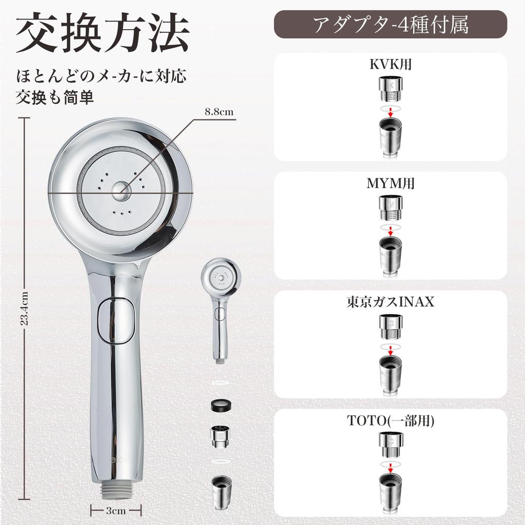 [Простота установки/Международный универсальный стандарт] Винты используют интерфейс G1/2 международного универсального стандарта, поэтому вы можете легко прикрепить шланг для душа к душевой лейке всего за 3 секунды без каких-либо инструментов! Кроме того, он поставляется с 4 типами соединений. (М/К/Г/Т) и совместим с большинством типов шлангов, поэтому его можно легко установить в соответствии со стандартами вашего домашнего душа. Стандартные винты, которые можно устанавливать как есть: Такаги, Tokyo Gas, ТОТО (некоторые), САН-ЭЙ, ЛИКСИЛ (ИНАКС), КАКУДАЙ. (Пожалуйста, обрати внимание: Так как это последняя модель душевой лейки, она может быть несовместима с некоторыми продуктами TOTO. (старые продукты).)