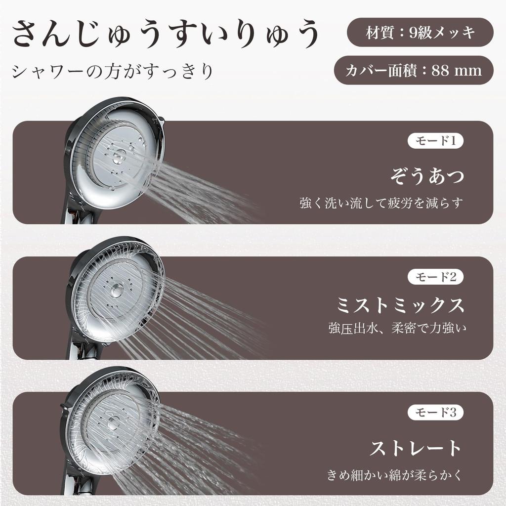 [Можно переключать 3 режима подачи воды] Ухаживайте за всем телом с помощью одной душевой насадки, и вы можете легко переключаться между 3 режимами подачи воды, которые можно выбрать в зависимости от области и цели купания.. ① Режим слона: Быстро смойте мощной и ритмичной струей воды.. ② Прямой режим: Сохраняет вашу кожу мягкой, нежно очищая ее от загрязнений и грязи в порах.. ③Режим дождя: Достигает как силы, так и мягкости. Вы можете наслаждаться купанием, снимая усталость.. Эти режимы превратят ваш ежедневный душ в настоящее блаженство.