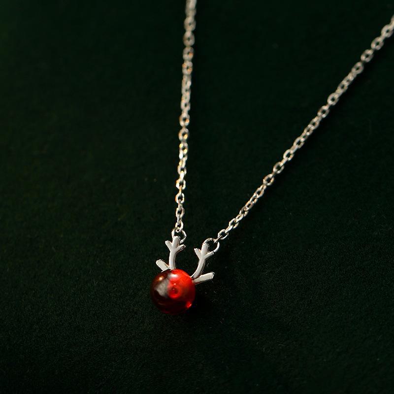 Ожерелье Banyan Tree S925 Silver Red Garnet с изображением лося - простая корейская рождественская цепочка на ключицу для женщин