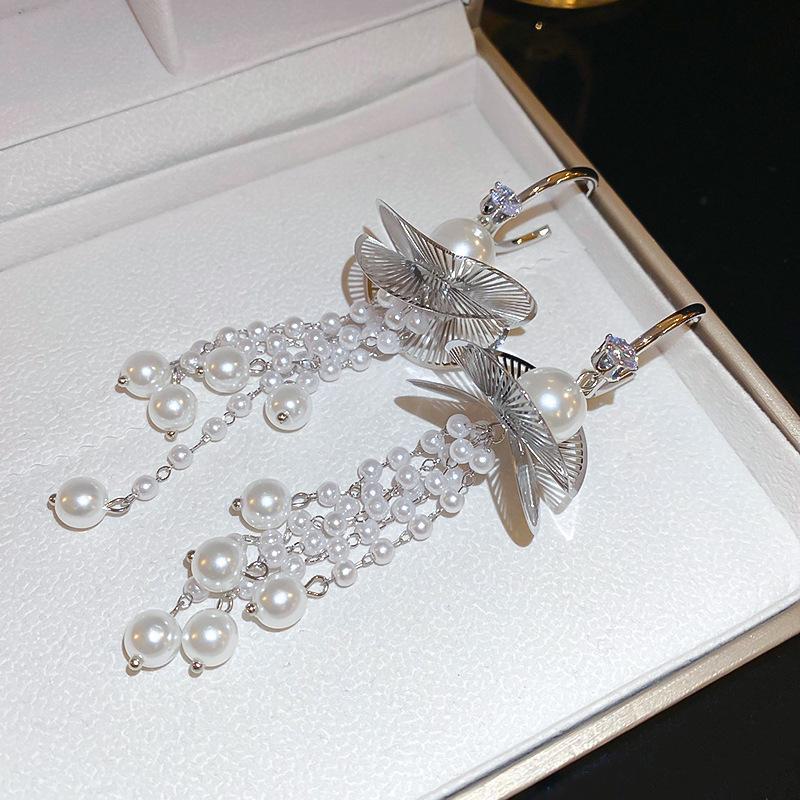 «Ретро серебряные игольчатые французские серьги с нерегулярным жемчугом — нишевый дизайн и мода»