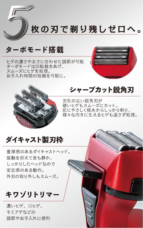 [Острое лезвие с острым углом] 5 тщательно отобранных лезвий. Внутреннее лезвие оснащено острым, остроугольным лезвием из высокопрочной нержавеющей стали.. Острое лезвие плавно срезает даже самую жесткую бороду от корня, поэтому вам не придется снова и снова проводить бритвой вперед и назад, что снижает нагрузку на кожу.