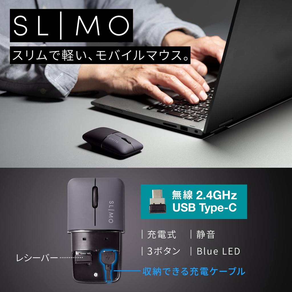 Sanwa Supply Silent Wireless Blue LED Mouse SLIMO (Перезаряжаемый, Type-C, черный) MA-WCBS310BK
