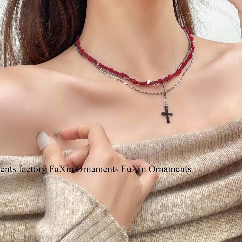 Ожерелье ручной работы «Темный крест»: Многослойная панк-цепочка на ключицу для женщин — купить товар онлайн с бесплатной доставкой до всему миру!