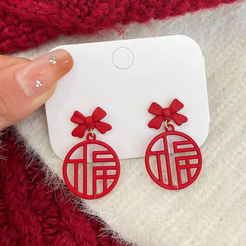 Серьги 'Благословение Красного Дракона' Серебряная Игла - Серьги на удачу в китайском стиле для женщин, Идеально подходят для китайского Нового года.