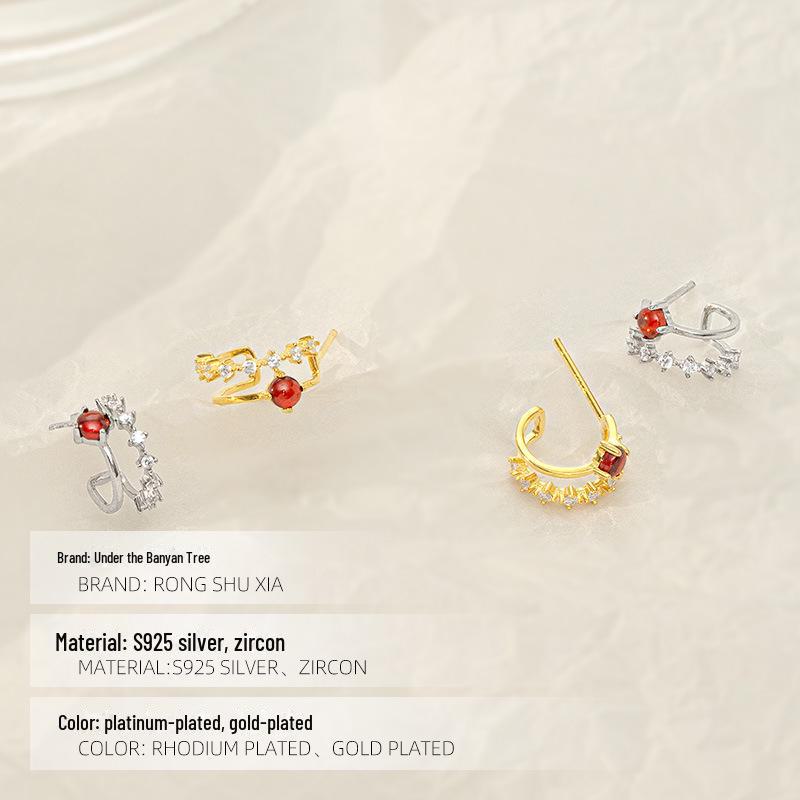 Серьги Banyan Tree Red Diamond C-образной формы из серебра 925 пробы для женщин — элегантный и ретро-стиль