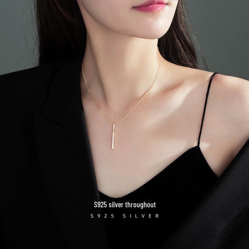 Ожерелье Banyan Tree S925 Silver Zircon Linear - элегантная вертикальная цепочка для женщин на ключицу