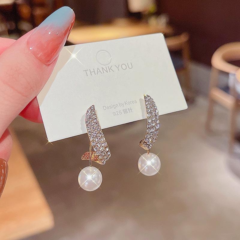 Серьги с корейским геометрическим жемчугом и бриллиантами, серебро S925, дизайн с возможностью ношения в двух направлениях — купить товар онлайн с бесплатной доставкой по всему миру!