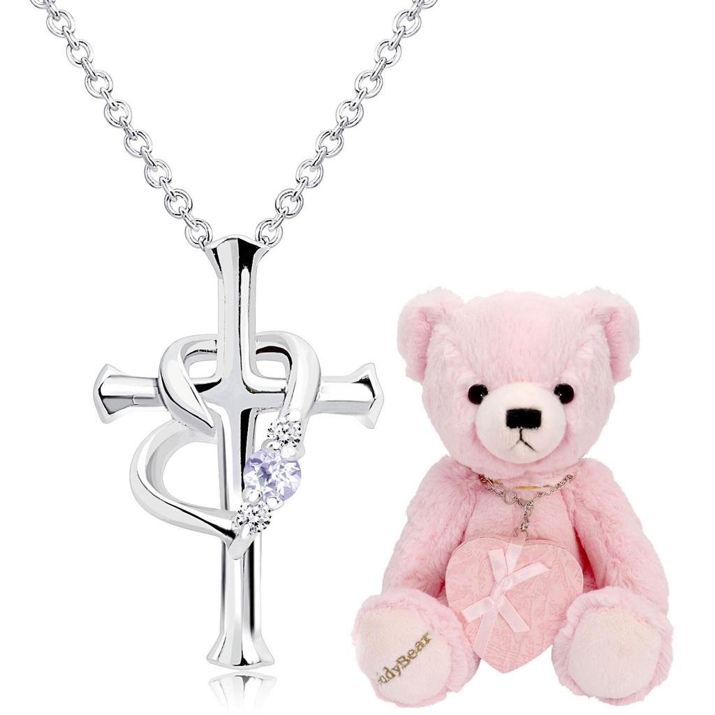 Ожерелье Крест Сердце Бриллиант Камень Серебро Розовый Медвежонок Танзанит Декабрь [Sears] p5257-tdt-01-p12 — купить товар онлайн с бесплатной доставкой по всему миру!