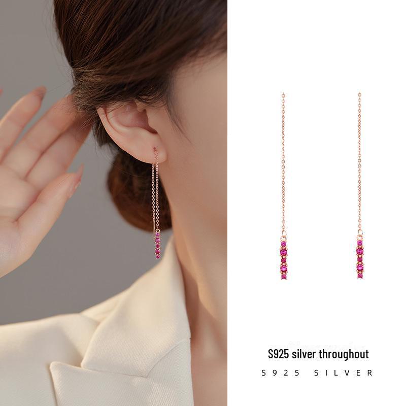 Элегантные серьги-кисточки из розового золота Banyan Tree: Серебро 925 пробы с красным цирконием для похудения лица, легкая роскошная одежда