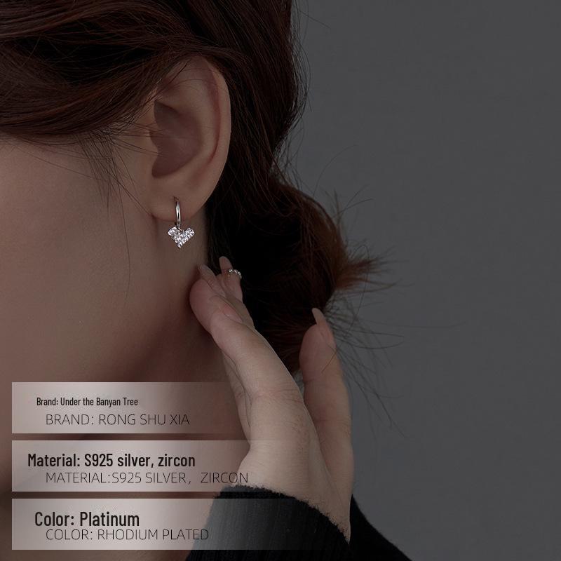 Серьги Banyan Tree S925 из серебра в форме сердца с цирконием Love — простой корейский дизайн, тренд 2022 года