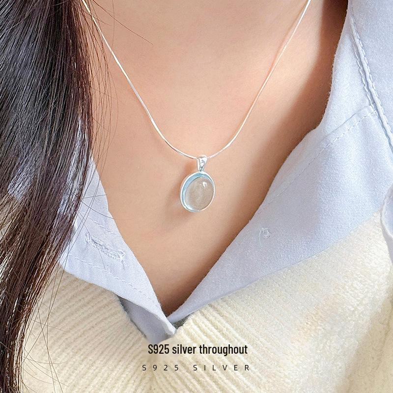 Ожерелье из овального аквамарина и лунного камня Banyan Tree S925 Silver - уникальная цепочка на ключицу для девушки — купить товар онлайн с бесплатной доставкой по всему миру!