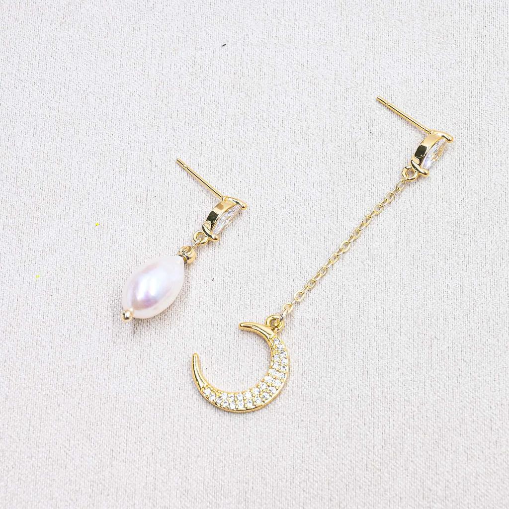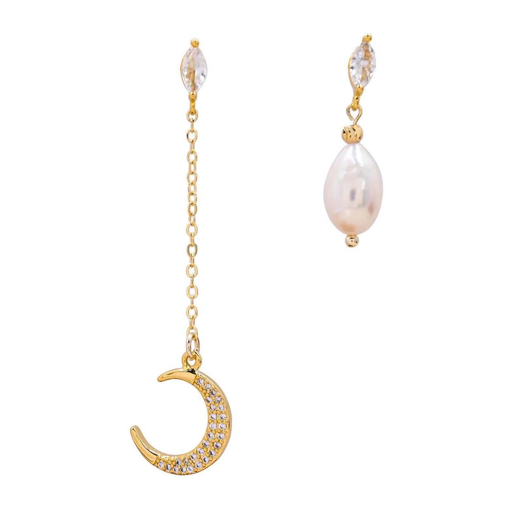 Асимметричные серьги из высококачественного жемчуга с позолоченной медью - в стиле ретро-китайский