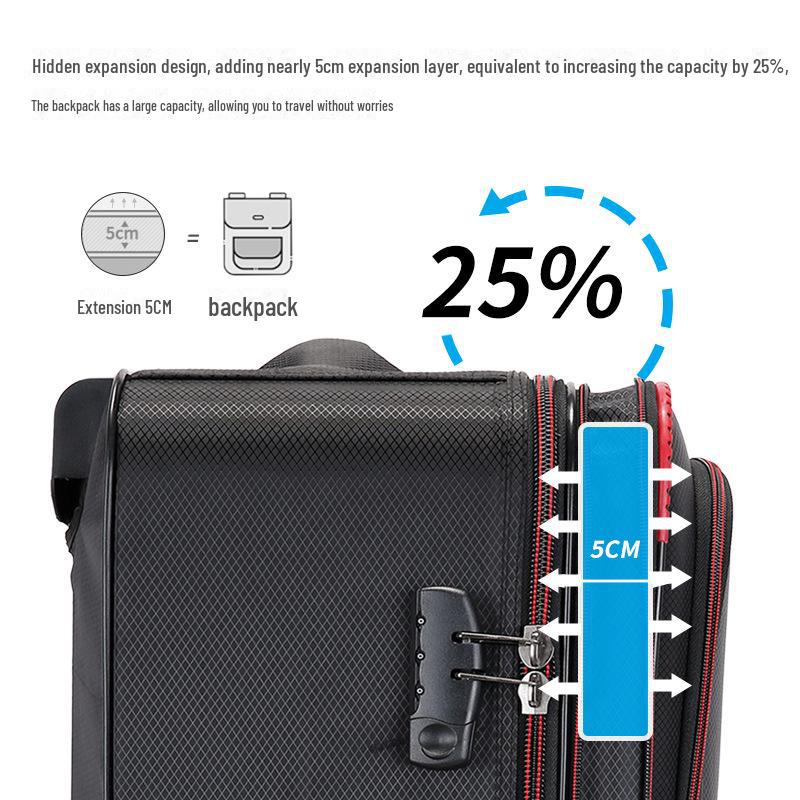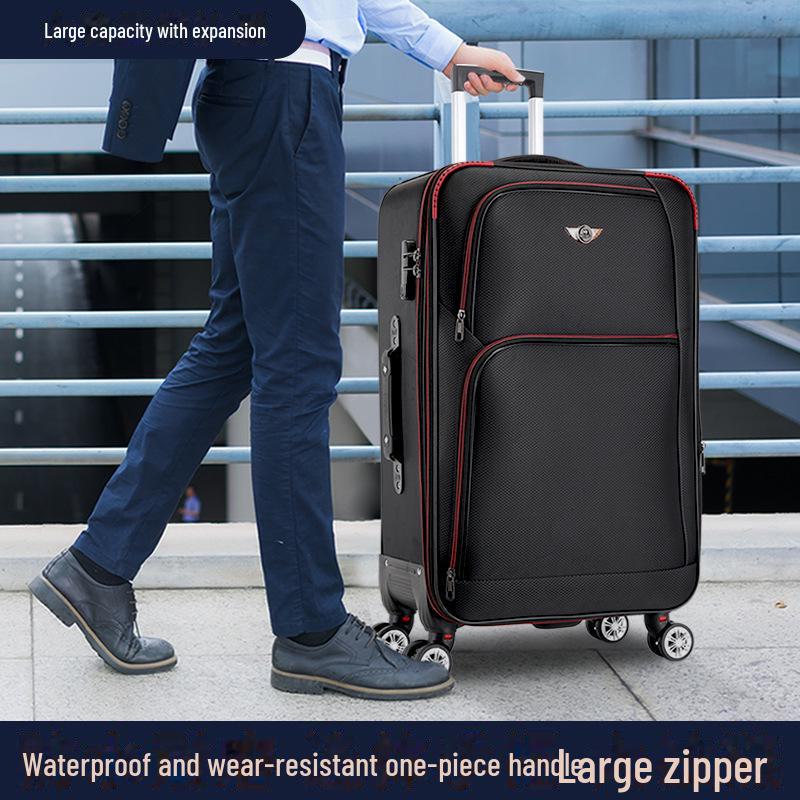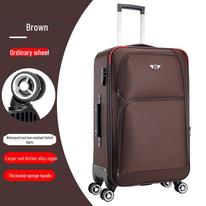 Мужской и женский прочный чемодан-тележка из ткани Оксфорд, легкий 20-дюймовый с кожаными деталями и кодовым замком.