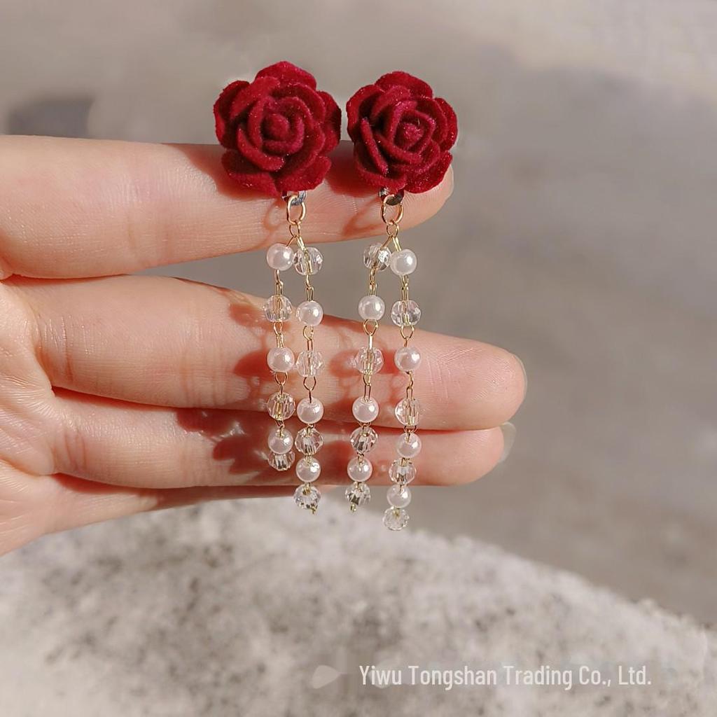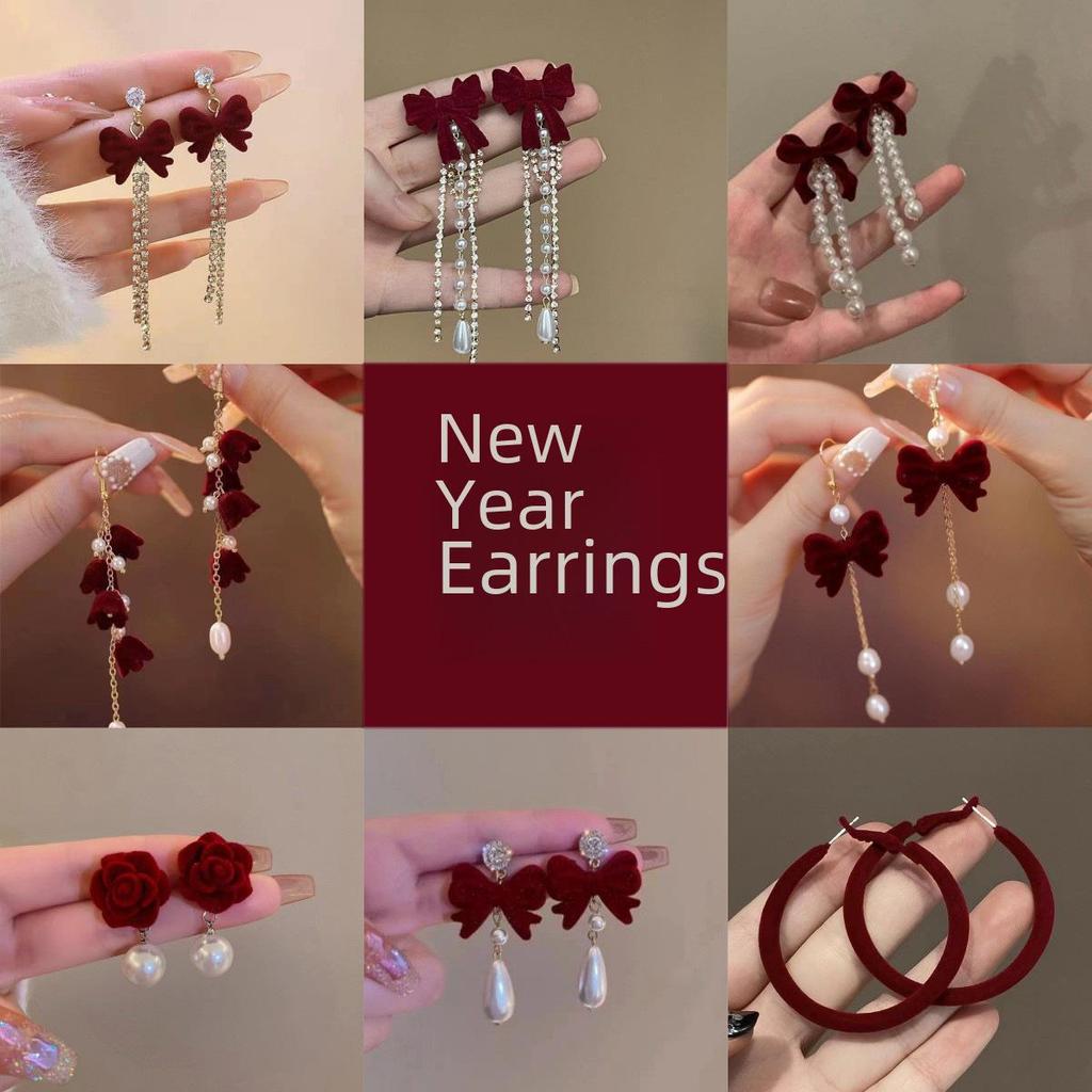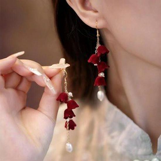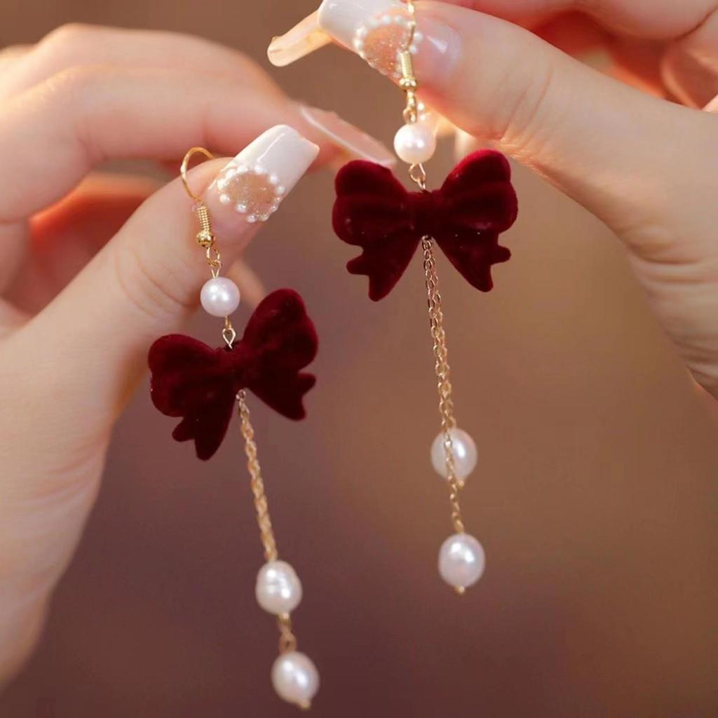 Длинные серьги из красного бархата для женщин на Новый год 2025 года — стильные, универсальные аксессуары для помолвок, свадеб и праздничных торжеств.