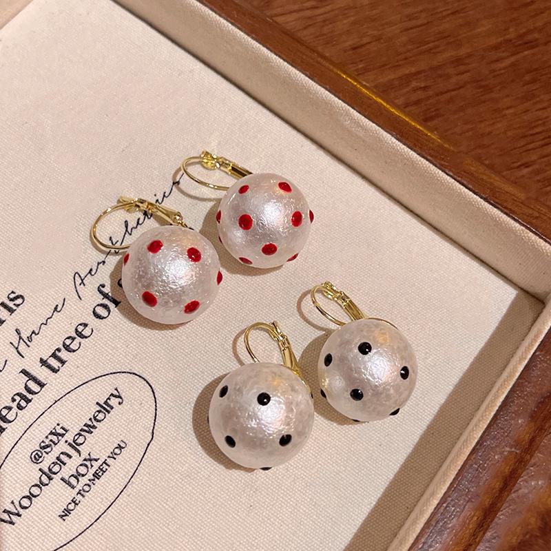 Серьги с хлопковым жемчугом в черный и красный горошек для женщин 2024 года осень/зима - шикарные элитные украшения знаменитостей из Интернета