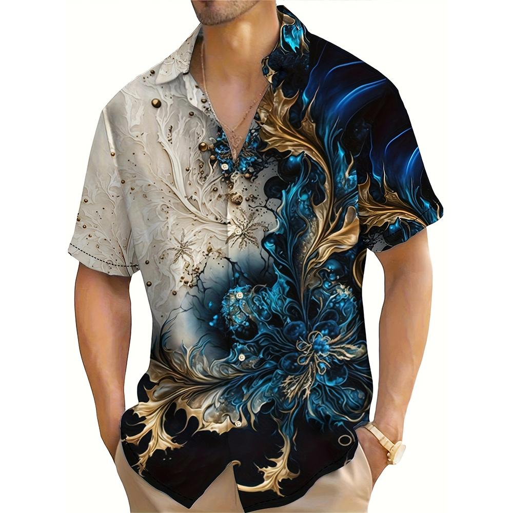 Мужская рубашка в гавайском стиле с цветочным принтом и коротким рукавом, с 3D-принтом и цветными блоками для летнего отпуска, свободные топы