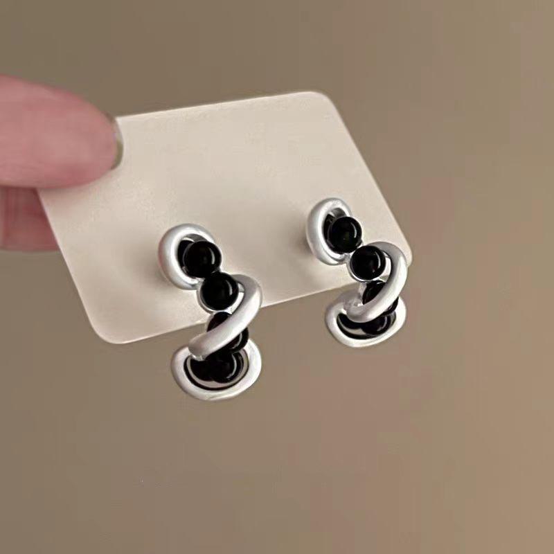 Элегантные французские ретро-серьги в форме буквы C черного и серебристого цветов — минималистичные, эффектные ювелирные изделия высокого класса — купить товар онлайн с бесплатной доставкой по всему миру!