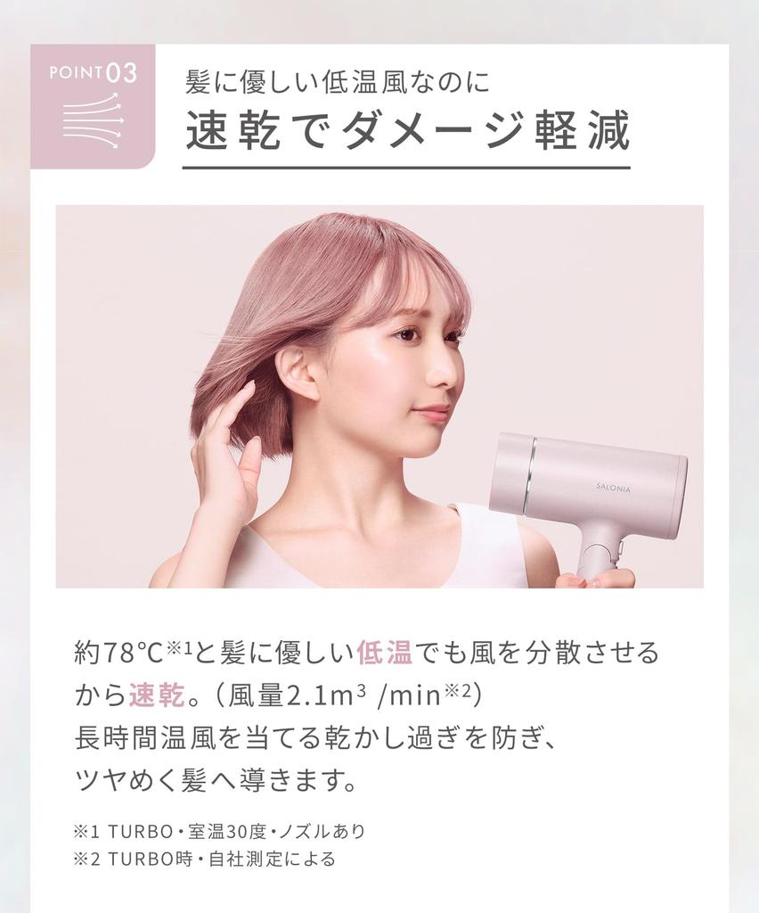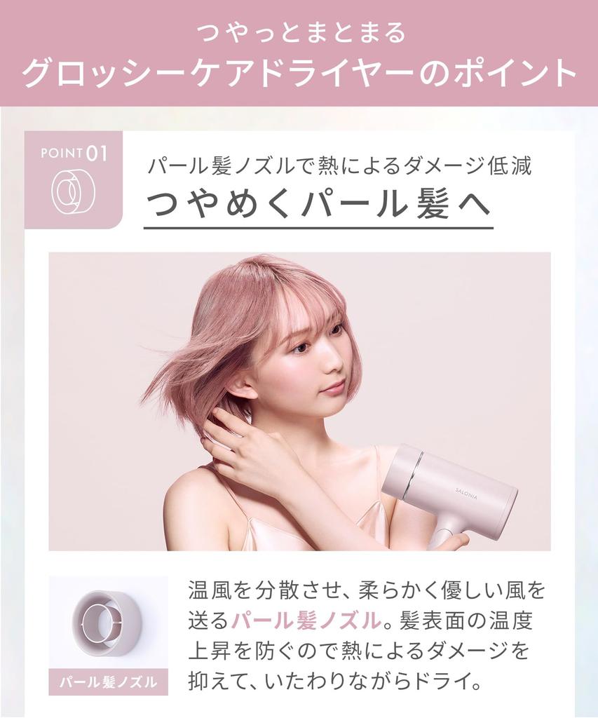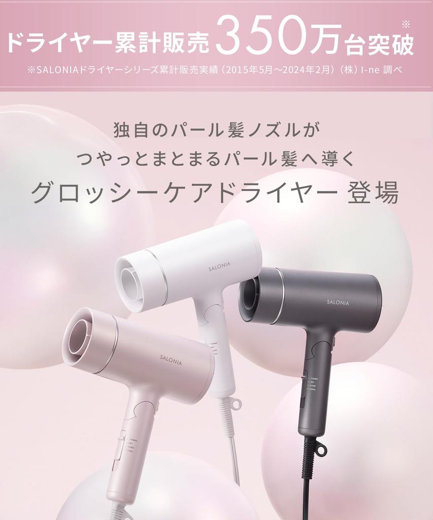 SALONIA Glossy Care Dryer Large Air Volume Quick Drying Lightweight Hair Dryer Gray